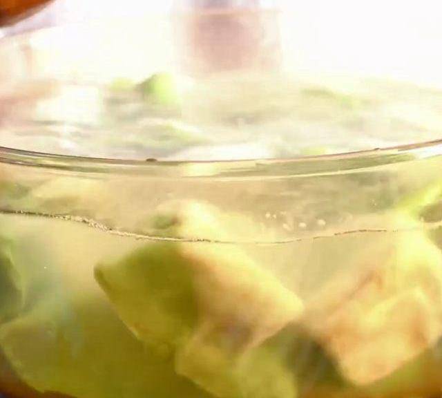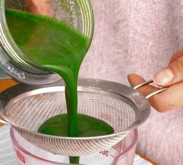 第3步、菠菜稍微放涼以後,倒入料理機當中打碎,然後過濾一下。