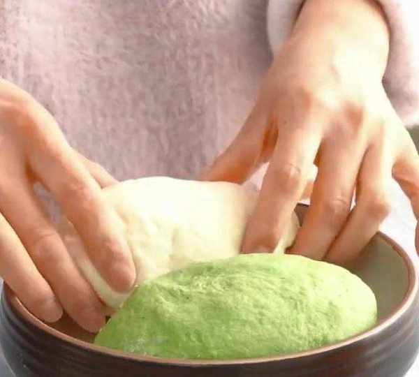 第5步、再用相同的方法,用清水和面粉揉一個白色的面團,蓋上保鮮膜靜置30分鐘以上,可以放置一會兒,吃起來會更加的筋道。