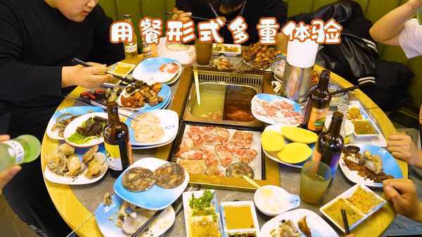春風十裡的每張餐桌都配備一個烤肉鍋和一個鴛鴦火鍋,烤肉涮肉可以同時進行,非常適合大傢一起聚餐,深受年輕人喜愛。