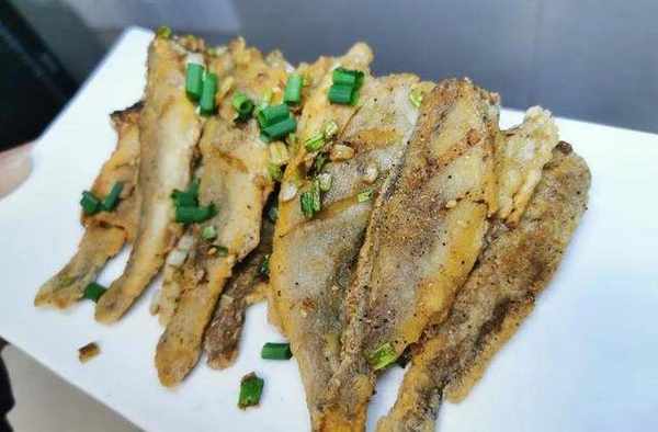 6.煎好的黃魚盛出來擺盤,黃魚表面全部撒上椒鹽和辣椒面。