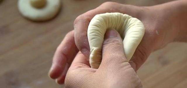 切好的劑子揉成圓球,壓成圓餅,就一塊兒遊說,把它搓成圓球,然後把油酥包起來。收口朝下,把它搟成牛舌狀,然後把它卷起來。繼續收口朝下搟成牛舌狀,這樣重復兩次就可以瞭,然後把它卷起來。再把它折過來,然後搟成薄餅,包上剛才調好的糖餡,像包子一樣把它包起來。收口朝下,最後壓成自己喜歡的形狀就可以瞭。