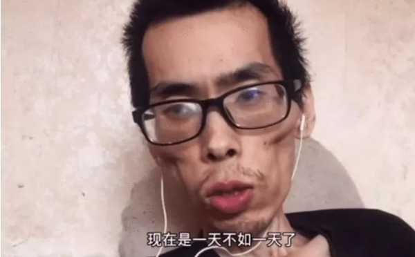 而隨著病情的惡化,他的樣貌也發生了巨大的變化。通過視頻我們可以看到,僅僅一年多的時間,阿健從最開始的臉頰圓潤到最後的骨瘦如柴,脫相到完全看不出年輕人的影子,更像是一個四五十歲的乾癟老頭,連說話也出不了聲音。