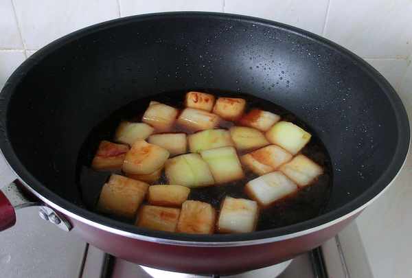 4. 鍋內放少許油,放冰糖炒化,下冬瓜炒均。