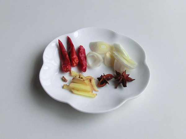 調料:甜面醬10克,生抽10克,冰糖8克,大料2個,幹辣椒3個,鹽2克,蔥1段、薑1塊,香油適量。