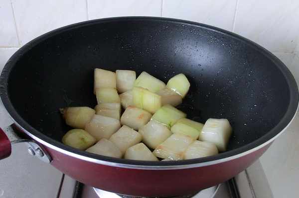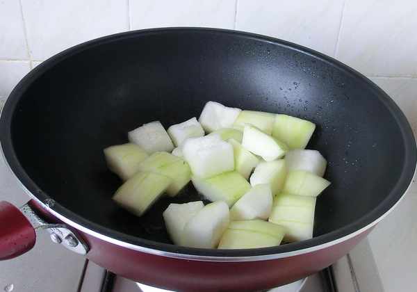 3.鍋中放少許油,下冬瓜煸一下,盛出。
