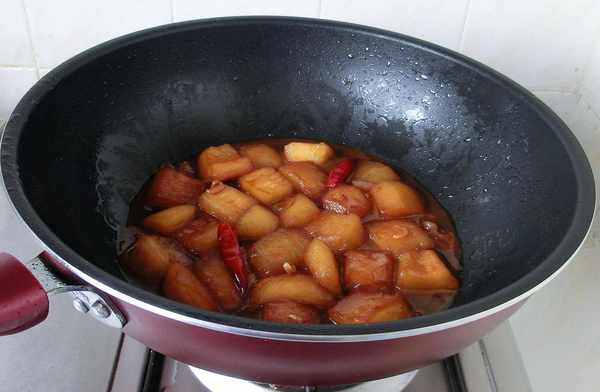 7. 再燒至半透明狀、鍋內剩少許湯汁時即可關火,淋香油出鍋。