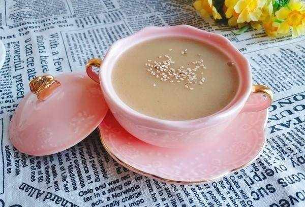 6、好瞭,倒入杯中,撒上芝麻做裝飾。