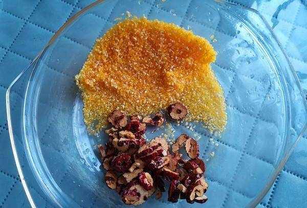 1.將碎玉米和紅棗圈洗凈