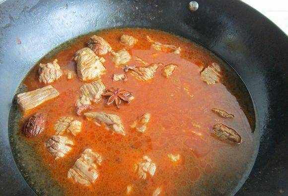 9.加水沒過牛肉,加入幹山楂片用大火燒開,轉小火煮1小時以上。