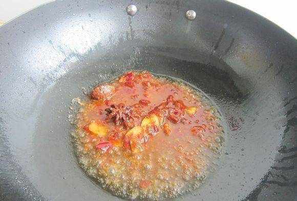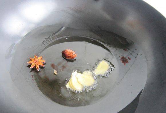 5.熱鍋冷油,加入薑草果和八角炒出香味