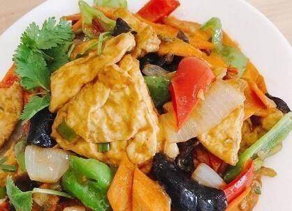 老豆腐、胡蘿卜、香菇、青辣椒、紅辣椒醬、豆瓣醬、鹽、糖、雞精、水淀粉