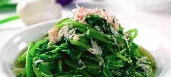 4、菊花放入菊花炒熟,加鹽、味精調味。由於蝦皮本身有咸味,所以少放鹽;