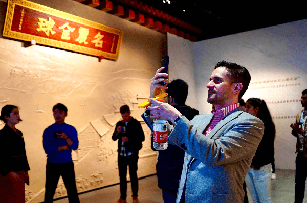 離開五糧液廠區國際友人們來到冠英古街。作為四川省非物質文化遺產的面塑技藝,在歷經百年傳承之後仍然頗具生命力。一雙手、一團面,幾件工具就能在揉、搓、壓、捏、剪之間塑造出形神俱備、細致精妙的花鳥蟲魚、蕓蕓眾生……面塑大師手下的每一個人物都獨具神韻。來自印度的艾曦饒有興致地體驗瞭面塑制作。“我以前就很愛做手工,面塑大師在幾分鐘之內就能塑造出一個栩栩如生的人物。我也想嘗試一下!”黑白相間,圓乎乎,軟糯糯,友人們捧著自己制作的熊貓面塑再次出發。