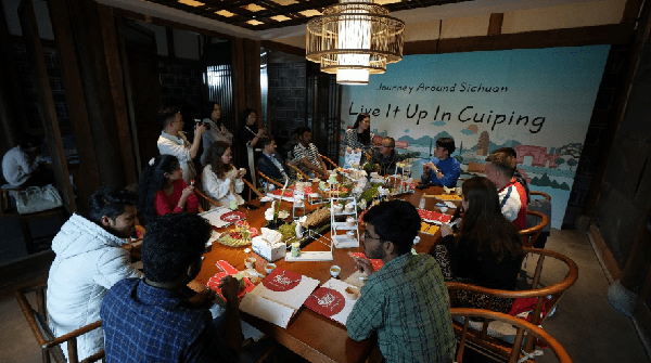 嘗一口香辣的燃面,品一杯醇香的美酒;一塊面塑捏出百態,金色草龍飛舞江邊;感受綠色的三江口,邂逅浪漫的月亮田。“走讀四川”潮玩翠屏帶領五國友人歷時兩日淺嘗翠屏的魅力。但翠屏之美絕不止於此,這片土地蘊藏著無限的靈動與生機,等待人們慢慢發現。