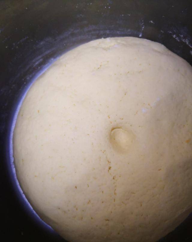2.加入面粉和泡打粉和成面團,發酵一小時。