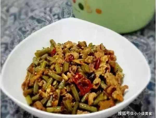 6、加入炒好的蒜苔炒10分鐘(蒜苔表面略皺)
