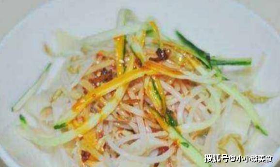 原料:綠豆芽100克,粉絲2條,香20克,精鹽5克,醋、醬油各30克。