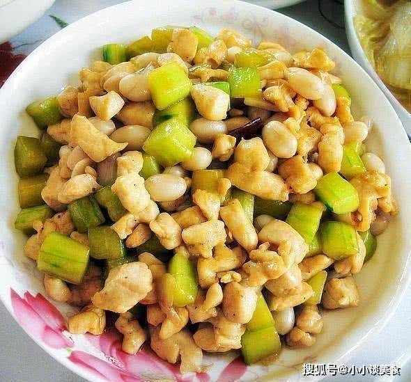 3.加入雞丁炒至熟透。加入黃瓜翻炒,不斷攪拌