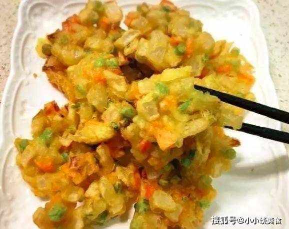 6倒入玉米、青豆和紅蘿卜翻炒;