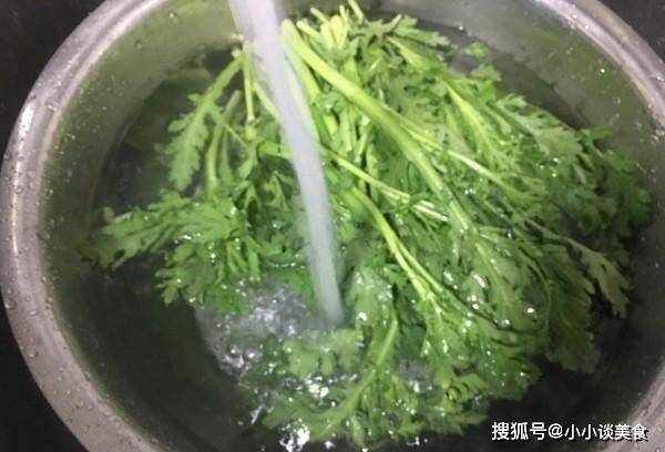 6.將帝王菜(又稱菊花)洗凈,切塊備用