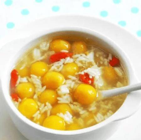 6、煮好後加入紅棗、枸杞、酒釀和紅糖,攪拌至順滑,繼續用中火煮。如果你不喜歡甜食,紅糖不要加太多。