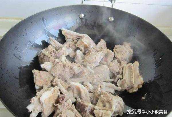 6.熱鍋冷油,熱70%的油,加入羊排翻炒至水分和香味釋放出來。