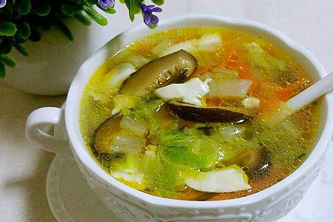 材料:白菜100g豆腐100g胡蘿卜1根香菇5個輔料胡椒粉適量雞精適量蔥花適量鹽適量油適量