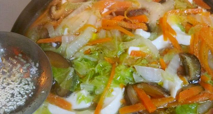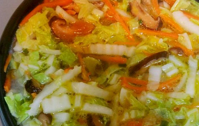 白菜,胡蘿卜,香菇炒過之後再煮湯,味道更濃鬱更可口~