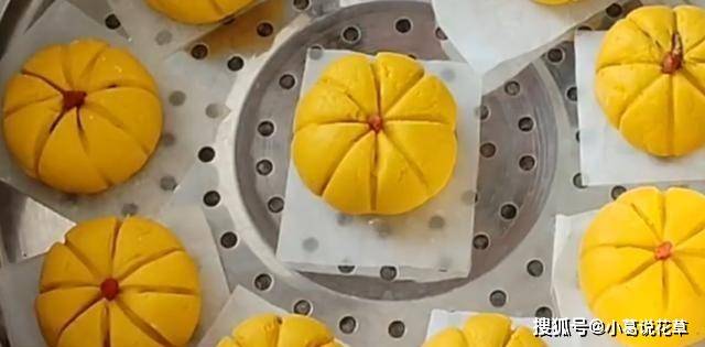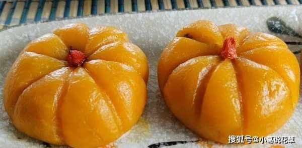 出鍋後,色澤誘人的小南瓜包子就可以吃瞭。在這裡提醒一下,我們在放巧克力餡的時候,壓入的時候不宜用力過猛,以免在蒸的過程中開裂。