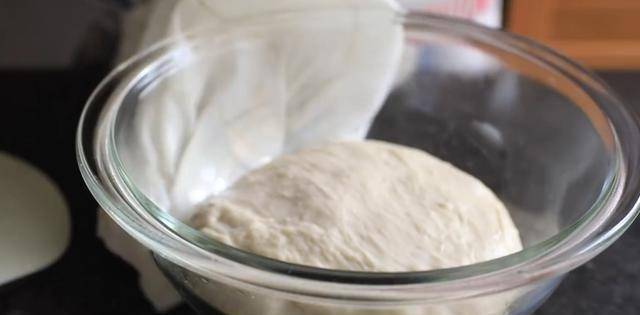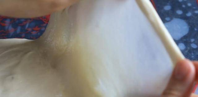 從面團邊緣拉出一小塊,越薄可以拉出越薄的錫紙,說明揉的差不多瞭。然後將生薑面團放回碗中,蓋上濕佈靜置一個小時。