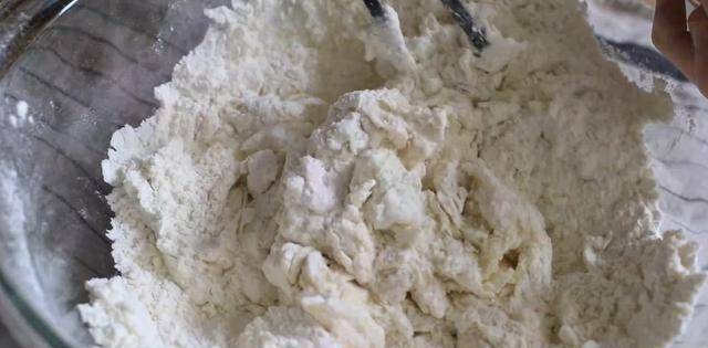 將劣質面粉篩入優質面粉中,加入白糖和鹽,拌勻,在中間打個洞,慢慢加水,稍放。用筷子順時針方向攪拌加入剩餘的水。用手揉,直到面粉變得片狀。