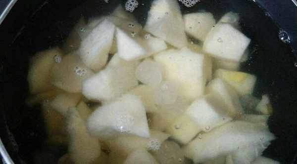 第一個技巧是煮梨時要用冷水。有很多人直接用自來水做糖梨,然後把鍋裡的水燒開再煮梨。影響口感,一般用涼開水。