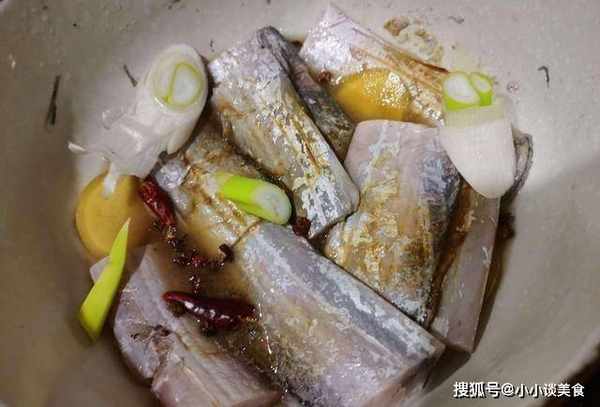 1.發尾解凍後,加入料酒、生抽、蔥段、薑片,如果要加幹辣椒和胡椒粉看個人口味,醃半小時左右。