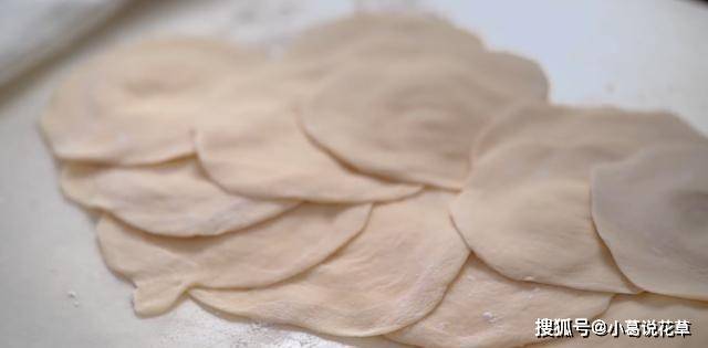 把面團放在撒瞭面粉的案板上搟成厚長方形,然後把面團對折,再搟開,再重復兩次,然後做成一個圓筒狀的面團,把面團切成16個A皮。取一個面團用手掌壓扁,然後用搟面杖搟開邊,搟成中間厚周邊薄的包子皮,剩下的面團搟成包子皮.