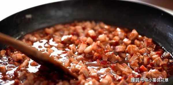 接下來,我們制作餡料,在煎鍋或平底鍋中用中高溫加熱植物油。加入洋蔥、大蒜和少許鹽。邊炒邊炒出香味,然後加入切碎的叉燒肉、生抽、老抽等。將所有材料混合均勻,加入少許水,小火煮3-4分鐘。
