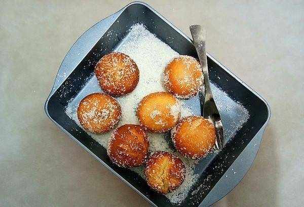 11.取出炸至金黃色,趁熱滾入椰絲。