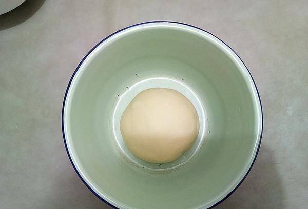 4、將揉好的面團整理好放入容器中,蓋上保鮮膜放在溫暖的地方發酵。