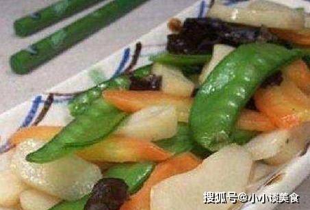 4、熱鍋冷油,先下胡蘿卜片,炒7分鐘至軟,再下黑木耳、荷蘭豆翻炒,最後下馬蹄片,翻炒一分鐘.加入適量的鹽拌勻,就可以從罐子裡拿出來瞭。(這道菜比較適合口味清淡的朋友,喜歡口味重一點的可以加適量生抽和雞精調味)