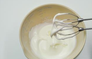 7C料蛋白分3次加入細砂糖打至濕性(圖8)。