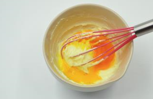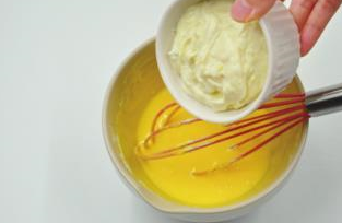 3加入2隻蛋黃攪拌均勻(圖3)。