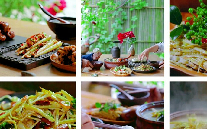 就在兩三天前,李子柒發佈瞭一個新的視頻,視頻中,這個農村姑娘背著竹簍,上山采摘竹筍,回來之後用這些采到的水竹筍做瞭八道大餐,每一道菜看起來都十分誘人。