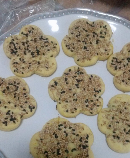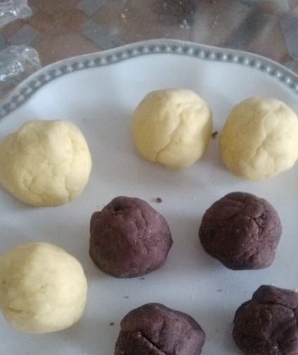 在揉成這樣的小團的,把豆沙也揉成團狀。再把糯米團壓成餅包住豆沙,餡料可以根據口味加,或者不加,然後放在模具裡壓成花,放上芝麻。