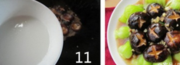 16、做好的象征吉星高照寓意的七個香菇擺在有油菜上,再澆上湯汁,亮麗登場!