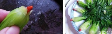 8、用水果刀在油菜根部切一個切口中間部分切得深一點。