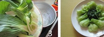 3.水中放入適量油和鹽燒開後下油菜氽熟。