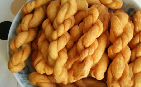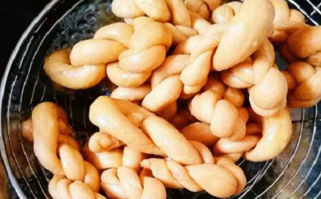 蓋上蓋子放在室溫下發酵至兩倍大,分成小面團,搓成麻花,放在熱油中炸至全身金黃色即可。