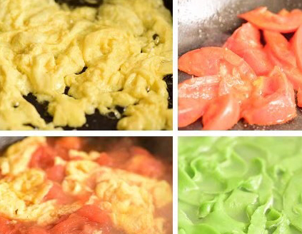 做法:面粉250g,菠菜150g,冷水100g,雞蛋1個,番茄1個