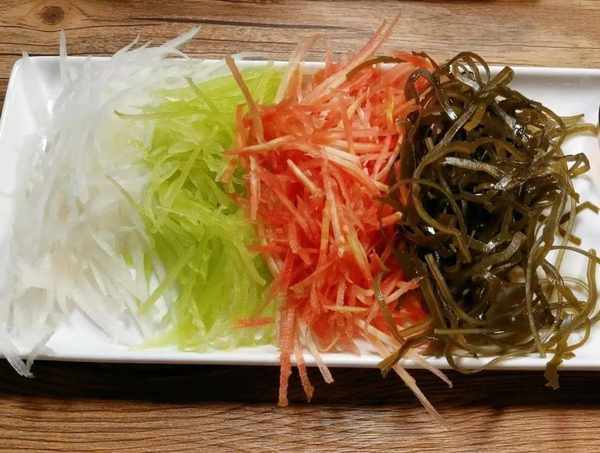 04. 白蘿蔔、萵筍、紅蘿蔔、海帶,通通切細絲~