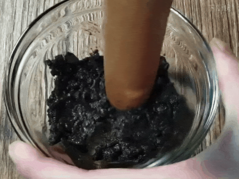 03. 把豆豉碾壓到差不多看不見顆粒,然後倒入不粘鍋中,混入澱粉水,快速攪勻,成泥漿狀就可以啦。全程小火小火小火~