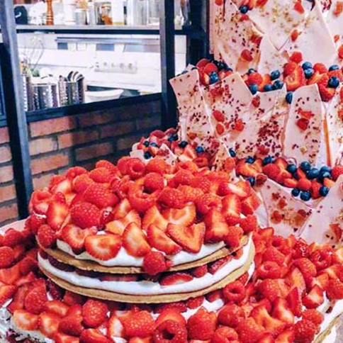 看看這些不同尺寸的蛋糕,他們真的是要將水果放到無處可放才會罷休啊,看著都流口水!